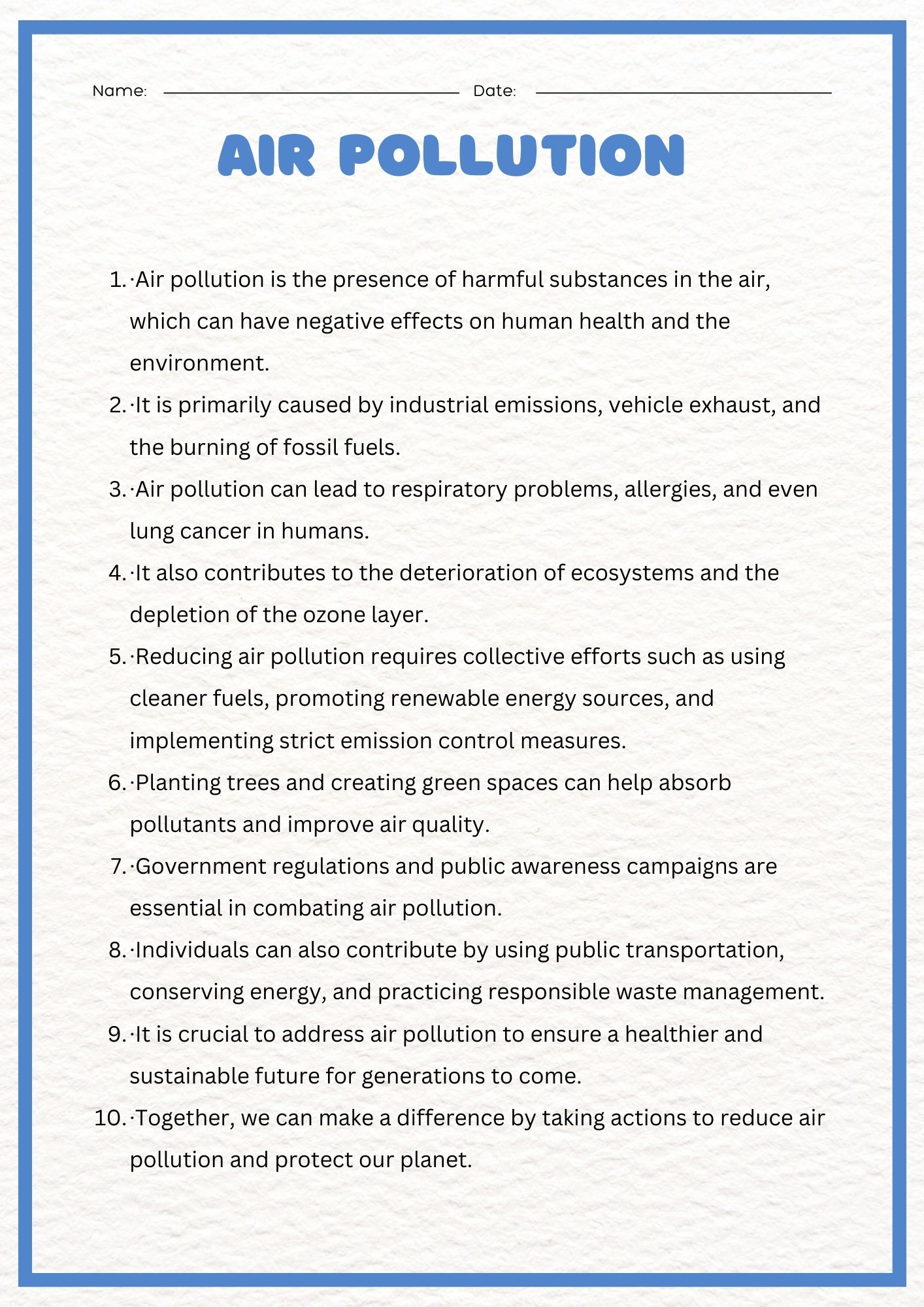 By taking these steps, we can make a big difference in reducing air pollution, improving air quality, and protecting both human and environmental health.