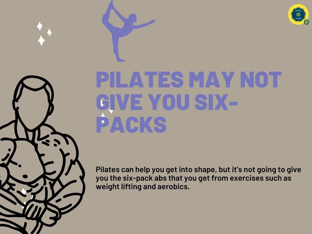 Pilates can help you get into shape, but it’s not going to give you the six-pack abs that you get from exercises such as weight lifting and aerobics.