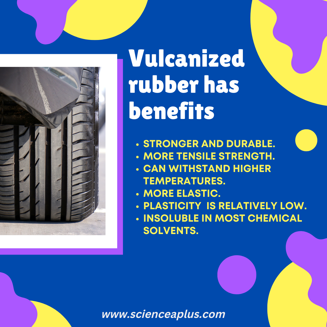 Natural or else crude rubber is soft and sticky with low elasticity and low tensile strength. It has poor resistance to wear and tear and can be damaged by common organic solvents as its soluble in them. The problems are overcome in the process of vulcanization.