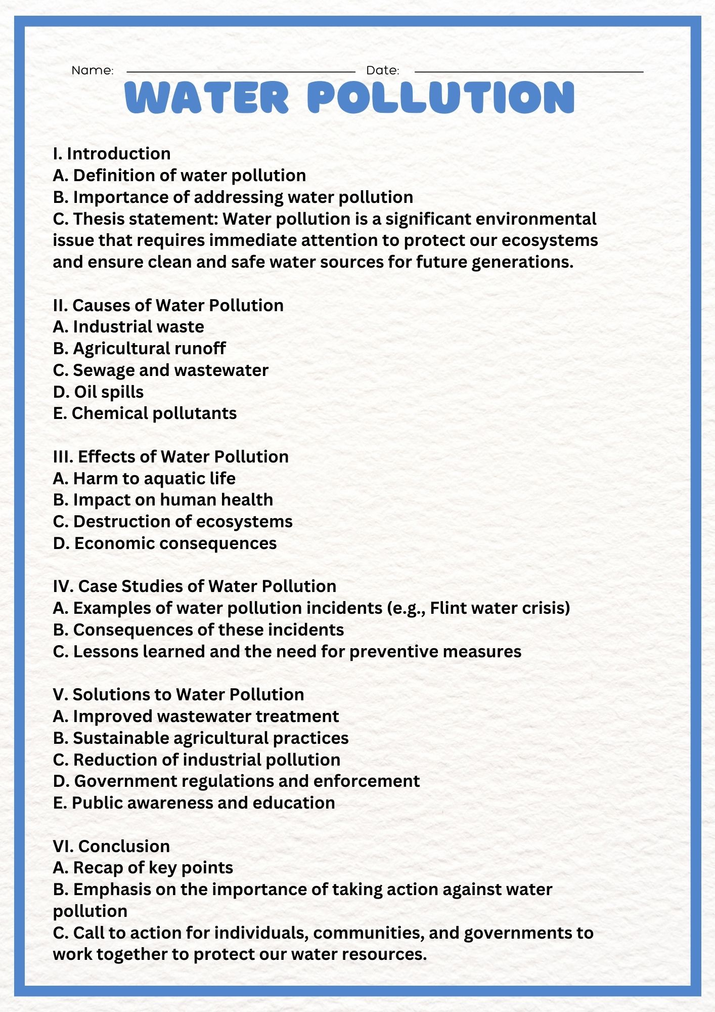 Water Pollution Essay – outlines